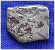 | Description / विवरण | The coin is an imperial type of Punch- marked coin. The coin is rectangular in shape. Obverse The symbols are Sun, crab, three taurines and three arrow around a circle, tree. Reverse The symbols are defaced. |
