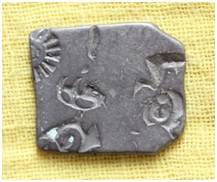 | Description / विवरण | The shape of the coin is irregular. This is an imperial type of punch marked coin. Obverse Sun and some indistinct symbols. Reverse Branches of tree. |