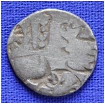| Description / विवरण | The shape of the coin is semi-circular. This is an imperial type of punch marked coin. Obverse Sun, A human figure flanked by four tourine, elephant, six armed symbols, bull. Reverse Tree, four squared squar and an indistinct symbol. |