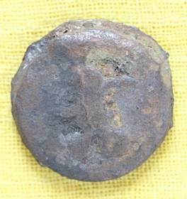 | Description / विवरण | The shape of the coin is circular. Obverse Kushana type king, standing with his right hand slightly curved upward and his left arm curved downward. Reverse Probably the figure of MAO or Moon-God with his right hand extended slightly curved downward and the crescent above the left shoulder. |