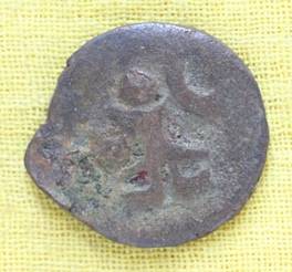| Description / विवरण | The shape of the coin is circular. Obverse Kushana type king, standing with his right hand curved upward and his left hand extended slightly downward. Reverse Probably the figure of MAO or Moon-God with his right hand curved upward and the crescent above the left shoulder. |