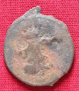 | Description / विवरण | The shape of the coin is circular. Obverse Kushana type king, standing with his right hand extended and his left and extended. Reverse Probably the figure of MAO or Moon-God with his right hand curved upwards and the crescent above the left shoulder. |