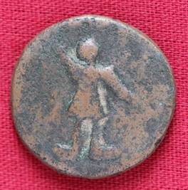 | Description / विवरण | The shape of the coin is circular. Obverse Kushana type king, standing with his right hand uplifted and his left hand extended. Reverse Probably the figure of MAO or Moon-God with his right hand uplifted and left hand extended. A crescent is found on the left shoulder. |