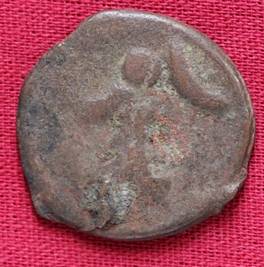 | Description / विवरण | The shape of the coin is circular. Obverse Kushana type king, standing with his right hand curved upwards and his left hand extended. Reverse Probably the figure of MAO or Moon-God with his right hand slightly curved upwards and the crescent above the left shoulder. |