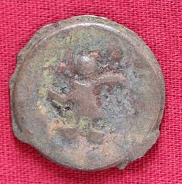 | Description / विवरण | The shape of the coin is circular. Obverse Kushana type king, standing with his right hand curved upwards and his left hand curved downwards. Reverse Probably the figure of MAO or Moon-God with his right hand curved upwards and the crescent above the left shoulder. |