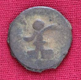| Description / विवरण | The shape of the coin is circular. Obverse Kushana type king, standing with his right hand curved upwards and his left hand extended curved downwards. Reverse Probably the figure of MAO or Moon-God with his right hand slightly curved upwards and the crescent above the left shoulder. |
