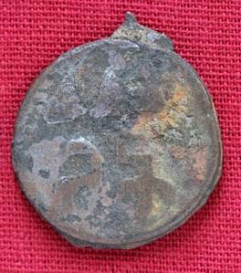 | Description / विवरण | The shape of the coin is circular. Obverse Probably the figure of MAO or Moon God with his right hand curved upwards and the crescent above the left shoulder. Reverse Three hills or cone like objects placed in a straight line and below them some legend. |