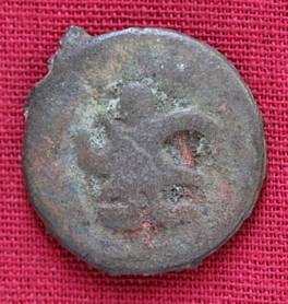 | Description / विवरण | The shape of the coin is circular. Obverse Kushana type king, standing with his right hand curved upwards and his left hand curved downwards. Reverse Probably the figure of MAO or Moon-God with his right hand curved upwards and the crescent above the left shoulder. |