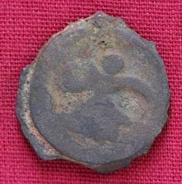 | Description / विवरण | The shape of the coin is circular. Obverse Kushana type king, standing with his right hand curved upwards and his left hand extended slightly curved downwards. Reverse Probably the figure of MAO or Moon-God with his right hand curved upwards and the crescent above the left shoulder. |