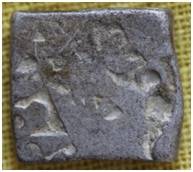 | Description / विवरण | The coin is known as Kosala or Janapadatype of Punch-marked Coin. The shape of the coin is square. Obverse Sun, branches of tree and six armed. Reverse Tiny mark but not clearly visible. |