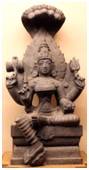 | Description / विवरण | Maa Manasa Devi, the snake goddess is seated in Lalitasana in a square pedestal under a hooded canopy of five cobras. Out of four arms, uplifted upper left hand holds a trident, lower left hand holds a bowl and right uplifted upper hand holds a dambaru with snake and lower hand holds a kharpara. She is wearing mukuta, ear rings, bracelets, armlets, anklets, necklaces and keyura. |