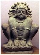 | Description / विवरण | It is a female figure. It is sitting on double petalled lotus pedestal. She has spread her two legs and rests her two palms over the pedestal in between her legs. She wearing Rudraksha in her neck, arms, wrists and may be anklets on her feet. Her hair style is open curly hair. She is wearing kundala in her ear. |