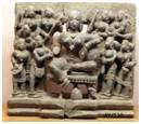 | Description / विवरण | The image of Chachakhai carved in the center of the stone slab is found seated on a cushioned seated with a pitcher held in the left hand. Her right hand is broken from the elbow and missing. She is surrounded by a series of female attendants displaying cosmetics boxes, chauris and alatas. The main figure as also the attendant are provided with rich costumes and decorative ornaments. For the first time we could notice a nose ornament worn by an Orissan image. Hairs on the head are arranged in bulging knots. The main lady figure is carved seated in lalita Pose. |