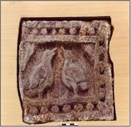 | Description / विवरण | The panel within beaded borders depict two birds facing each other |