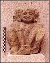 | Description / विवरण | The sculpture is depicted as squatting on his haunches with his hands placed between his feet. He has short beared, moushtache and bulging eyes |