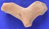 A terracotta animal figurine. Row of oblique lines and circular punches over the body. Three deep vertical incised lines are on the both sides of neck. Face and all legs are missing.