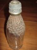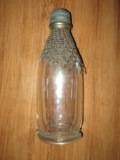| Description / विवरण | This is a bottle. Base is projected and thick having a circular depression on base. Carirated neck from shoulder. From neck to shoulder a metal plate holds cane plaque. |