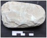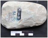 Bifacially flaked from all over with an arch like butt. The edge is broken and the margins are straight showing flake scars. The tool is slightly concave in the ventral and plano-convex on the dorsal. The edge of the tool is worned out due to excessive use. Both the ends are pointed and sharpened by removing small flake scars. The tool retains utilization mark on the working edge.