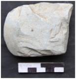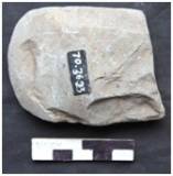 Bifacially flaked with a patch of cortex on both the sides. The dorsal is flaked all over. The flakes are marginally thick and irregular. A large and deep scar in the right margin on the inner face. The platform is slanting towards the left. The tool retains utilization marks. Relatively trimming activity is noticed on the dorsal.