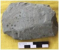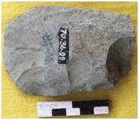 Flaked on both the faces with a convex edge and broken butt. The margins are straight showing marks of chipping. Triangualr in median cross section. A big patch of cortex on the dorsal which runs from the platform to the working edge. The dorsal is slightly concave. The ventral remains flat.