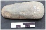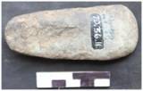 Bifacially flaked with cortex on both the faces. The tool is trimmed near the working edge which is slanting from both the sides. The ventral is slightly convex and the body portion and concave on the dorsal. The tool has an oval shaped cutting edge. The tool is thin in the left margin and relatively thick in the right margin. The working end is tapering on both the sides by grinding rolling.