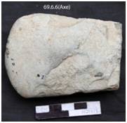 The tool is fairly complete and retains used marks in the working edge. The platform is relatively flat. Deep flake scars are noticed on both the sides near the striking platform. The tool retains some used marks in the form of notches.