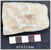 Bifacially flaked retaining patches of cortex. Margins are straight and roundish. Butt is moderately thick with biconvex poll. The sides are relatively flat and roughly conical in the median section which tapers from both the margins. A mid ridge is present on the ventral face of the tool.