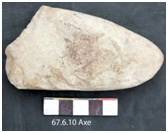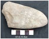 Ground on both the faces with a few marks of flaking in the working edge. The margins are roundish, little convex and butt is pointed. Major part of the cutting edge is lost due to excessive use of the tool. Elliptical in median section.