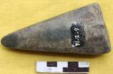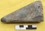 Ground well with a pointed butt. The opposite end is blunt and partly ground showing marks of battering. Margins are thick flat and divergent. Upper face is little convex and under is flat. Grinding mark is noticed on the butt. Rectangular in median and triangular in longitudinal sections.