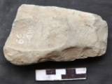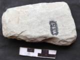 Made by flaking with thin and straight butt. One big and bold scar on the dorsal surface. Ventral surface is flat. Margins are characterized by alternate flaking. Working edge is broken. Median cross-section is irregular.