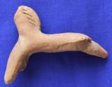 Model probably of a horse. Frontal right leg and neck are available. Rests are missing. Eyes are indicated by deep incisions, nostrils by holes. Circular punches and oblique lines are over the body. Two cross marks are noticed on both sides of the neck.