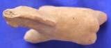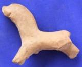 A terracotta animal figurine with a long neck. Probably eyes are deep incision.