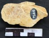 It is a flake tool removed by slow hammering technique as it contains wary flake scars. It is flat on the dorsal. The ventral is slightly concave and is roughly conical in shape. The tool is retouched in the tip portion to obtain a sharp cutting edge. The ventral is concave. The dorsal remains flat. It is slightly thick near the platform with two tapering sides.