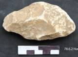 Dorsal end thoroughly modified removing small flakes. A mid-rib from tip to butt. Dorsal shows working on the anterior. Posterior cortexed. A short mid-rib joins the cortex. Pointed butt and tip, regular margin. Bi-convex median section and elliptical longitudinal sections.