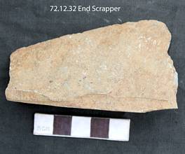 The tool retains a patch of cortex in the left margin. The tool is roughly triangular in ventral and dorsal is flat. A deep flake scar is removed on the ventral face near the working edge. The section is relatively flat. The tool tappers towards left margin and is roughly straight on the right margin.