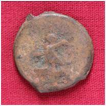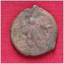 | Description / विवरण | The shape of the coin is circular. Obverse- Kushana type king standing with his right hand upwards and left arm extended. Reverse-- probably the figure of MAO or Moon God- with right arm curved up wards and the crescent above the left shoulder. |