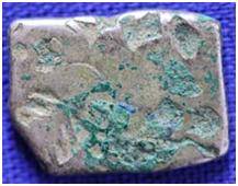 | Description / विवरण | The shape of the coin is irregular. This coin has been found from Tarabha, it is assumed that this type of coin was vogue in Kosala Janapada. Obverse Branches of tree and other symbols are indistinct. Reverse Chakra. |