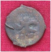 | Description / विवरण | The shape of the coin is circular. Obverse-Kushana type king, standing with his right hand curved up wards and left arm extended. Reverse- Probably the figure of MAO or Moon-God with his right arm curved upwards and the crescent above the left shoulder. |