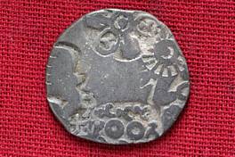 | Description / विवरण | The coin is oval in shape. Obverse Bull, sun, six-armed wheel, architectural, taurine. Reverse Tringle, two dots. |