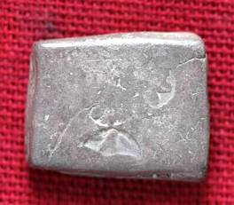 | Description / विवरण | The coin is rectangular in shape. Obverse Wheel, other symbols are indistinct. Reverse Munite symbol. |