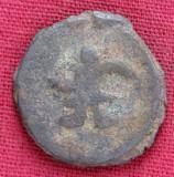 | Description / विवरण | The shape of the coin is circular. Obverse Kushana type king, standing with his right hand curved upwards and his left arm e xtended. Reverse Probably the figure of MAO or Moon-God with his right arm e xtended and the crescent above the left shoulder |