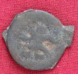 | Description / विवरण | The shape of the coin is circular. Obverse Kushana type king, standing with his right hand curved upwards and his left arm e xtended. Reverse Probably the figure of MAO or Moon-God with his right arm curved upwards and the crescent above the left shoulder. |