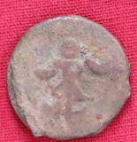 | Description / विवरण | The shape of the coin is circular. Obverse Kushana type king, standing with his right hand e xtended downwards and his left arm e xtended upwards. Reverse Probably the figure of MAO or Moon-God with his right arm e xtended downwards and the crescent above the left shoulder. |