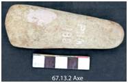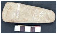 It is a complete specimen with the working edge slightly abraded. The tool is prepared on a rectangular pebble. The tool is of Neolithic period and the cortex is retained with two edges chipped off.