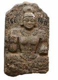 | Description / विवरण | Seated figure of female in padmasanaposture performing dhyana i.e. meditation. The head is adorned with jatamakuta which has at its base a wide band, the right hand is probably in abhaya-mudra while the left is not clear. There are two necklaces above the chest. The image is probably unfinished since the lower portion is not fully carved. |