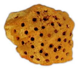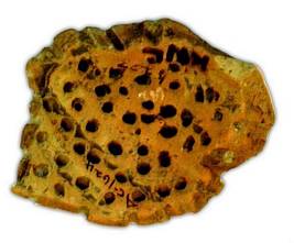 | Description / विवरण | Broken piece of a red ware pot with multiple perforations, it has flat base and globular body. Perforations were made from inside, of medium fabric, it has thick core. |