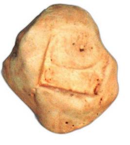 | Description / विवरण | Round plaster cast Indus seal having a standing elephant towards right and above it is pictographic script. |