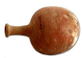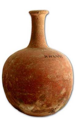 | Description / विवरण | Broken red ware wine pot with globular body, slender long neck and round base, splayed out rim with small opening at the top. |