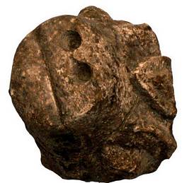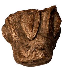 | Description / विवरण | Broken piece of a stucco represents head portion of a bull. It has protruding eyes, snout with prominent nozzles, mouth is shown in horizontal line, leaf shaped decorative object on the forehead. |