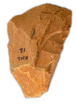 | Description / विवरण | Implement made on thick triangular flake with multiple flake scars on the dorsal side, thick edge on one side and sharp edges on lateral sides, blunt butt end and broad functional edge, flat under surface with flake scars on the edges. |